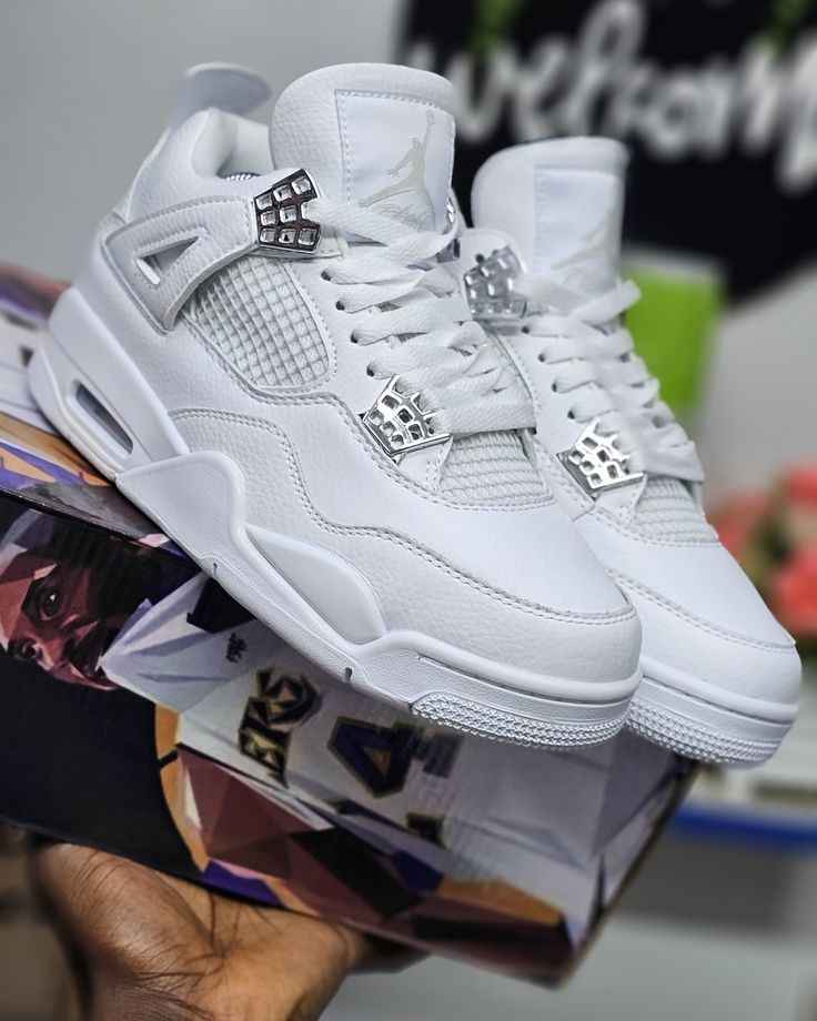 Elevate your sneaker collection with the legendary Nike Air Jordan 4. This iconic silhouette combines premium materials and timeless design, making it a must-have for any sneakerhead. Available in a versatile palette of Grey, bold Yellow, classic Black, and crisp White, each pair features the signature mesh inserts, 'wings' lacing system, and visible Air-Sole unit for a look that's as iconic as it is comfortable. Perfect for both on-court performance and off-court style."